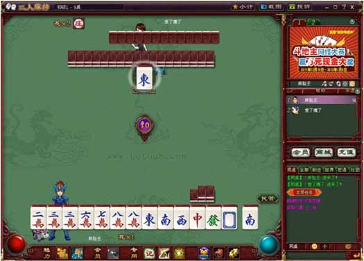 二人麻将是乐透大赢家独有的一款双人参与的麻将游戏,牌型中只包含万字牌和字牌。其胡牌类型也包含多种样式,每一局的时间也相对四人麻将较短,且较容易的胡牌方式另每局的节奏非常紧张、输赢非常刺激。
