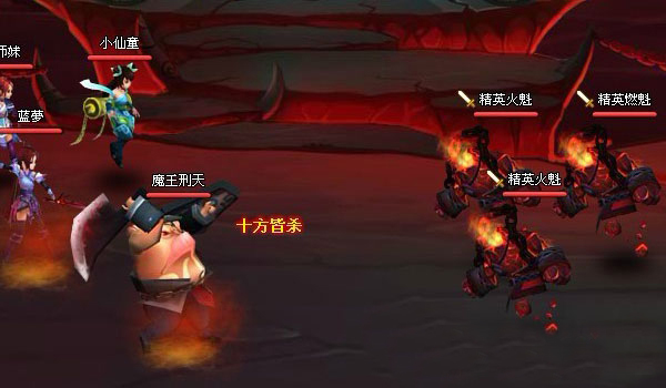 神仙道精英火麒麟这个BOSS怎么说呢,攻击很BT,第三次攻击会释放绝技火柱,输出同样很吓人!所以这里对一号位置能抗的T有了很大的要求,这里我们选择天门(神阵啊)!